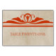 Stylish and chic Elegant Deco Wedding Table Card featuring a pair of art deco swirl flourish borders in dark orange and a vintage textured look background in a soft beige. This table card has rustic charm while maintaining a lovely sophisticated flair. Absolutely perfect for an art deco 1920's vintage themed wedding. Easy to customize, simply add the appropriate table number(s) in the text field provided. Click "Customize It" to find additional personalization options.