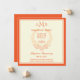 This formal square elegant graduation announcement features an orange border and monogram initials at the top. The ornate calligraphy style embellishment in the center and laurel crest watermark gives it a touch of class. Personalize these announcements with your graduation information. There is also plenty of room on the back for more information. This design works best with the square cardstock, for rectangle or rounded corners please see the following: