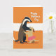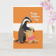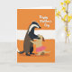 On the front of the card a tall, stout badger-like animal with a black-and-white striped face and warm brown body hugs a smaller, light-golden dog close, their bodies turned slightly toward each other like close friends sharing a quiet moment ❤️. The smaller dog looks up with an open-mouthed grin, and the gentle tilt of its head makes the embrace feel tender and caring. A soft pink tutu wraps around the dog’s waist, adding a sweet, affectionate touch without stealing focus from the cuddle. The background is a rich orange field that keeps the scene bright and cozy, like late-afternoon light. A wide white band runs horizontally across the middle, giving the illustration a calm break and a place for the eye to rest 🌼. In the upper right, the message “Happy Mother’s Day” appears in white, flowing lettering that stands out clearly against the orange. The two animals sit mainly on the left side, while the open space on the right keeps the layout balanced and airy. The orange backdrop is split by that crisp white stripe, with the pink tutu and striped face providing the main color accents.