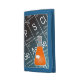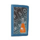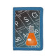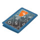This chemistry-themed wallet features a cartoon drawing of an Erlenmeyer, or Conical, Flask containing a mysterious orange chemical. The black and blue background features a part of the Periodic Table of the Elements, including symbol, name, and atomic number!