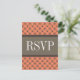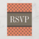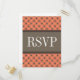 Trendy and chic Fancy Lattice Wedding RSVP Postcard featuring a stylish circle and diamond studded pattern over a vibrant nectarine orange background with a broad two-toned brown border. This elegant RSVP card is perfect for a modern wedding. Easy to customize, simply add your wedding details in the text fields provided. Click "Customize It" to find more personalization options.