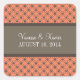 Trendy and chic Fancy Lattice Wedding Stickers featuring a stylish circle and diamond studded pattern over a vibrant nectarine orange background with a broad two-toned brown border. These elegant wedding stickers are perfect for a modern wedding. Easy to customize, simply add your wedding details in the text fields provided. Click "Customize It" to find more personalization options.