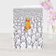 Designed with an expansive field of soft-eared white rabbits outlined in black, the scene stretches far into the distance like a gentle sea of shapes 🐇. Each rabbit has pale pink inner ears and a small brown nose, packed closely together from a slightly elevated view. Near the center, one rabbit stands out in golden-orange with small red touches on the ear tips and a raised paw, lounging among the others as if it’s been noticed and welcomed. The warm figure’s relaxed posture suggests a friendly confidence, like it’s sharing a quiet, affectionate moment with the crowd rather than competing with it 🐰. Lighting stays even and shadowless, giving every rabbit a smooth, sculpted look and keeping the background airy and bright. A short line of text sits along the top in a soft gray, while a second, smaller line rests near the bottom in matching gray to balance the layout. The orange rabbit’s lifted paw and red-tinted ear tips draw the eye against the repeating white forms and pink ear details.