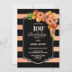Orange Floral 100th Birthday Party Invitation
