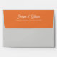 Elevate your wedding invitations with this 'Ink & Petals' Customizable Envelope. This contemporary envelope showcases hand-drawn lineart flowers on the inside, with a touch of vibrant pops of orange on the top flap for a customizable address. The rest of the envelope is elegantly monochrome in shades of gray, adding a modern touch to your wedding stationery.