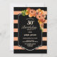 Orange Floral Black Striped 30th Birthday Invitation