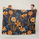 Orange Floral Boho Autumn Fall Black Fleece Blanket