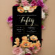 Orange Floral Elegant Black 50th Birthday Party Foil Invitation