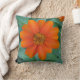 Orange flower pillow featuring a beautiful orange flower close up set against a soft green background, gives off a soft spring or summer vibe.