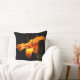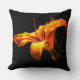 Throw pillow with image of a orange and yellow flower on the front and colorful abstract orange design on the back.
