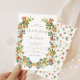 Plain white envelopes are included with paper invitations and will come to fit the invitation size you select. If you don’t need the envelopes, you may choose to not receive them by selecting the dropdown below "Envelopes" and choosing "None." If you’d like to have a design on your envelopes, you can browse all of these available envelopes to find the design that complements your Orange Flower Wreath Wedding Invitation.