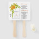 Orange watercolor flowers, arch and initials fall wedding program hand fan. This lovely wedding design features an arch frame with orange cactus flowers and green leaves on the left corner and your initials. The names are in script typography.