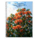 The front of this journal spiral notebook features my original photograph of a tree with blooming orange flowers and a blue cloudy sky. The image was processed in an illustrative and watercolor painterly style with a touch of whimsy in the artwork. Bible Scripture from Colossians 4:2 is at the top of the image.