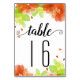 Orange ethereal flowers calligraphy flloral wedding table number card. It includes a pretty bouquet of orange flowers and green leaves. The word "table" is written in a cursive script handwritten calligraphy style font.
