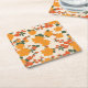 Orange Flowers, Floral Pattern, Pattern Of Flowers Square Paper Coaster