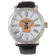 Football shirt design with an old gold orange shirt. Add name and number of your choice. The watch face has Roman numerals.