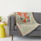 A charming christmas blanket with a retro flair. An illustration of a cute orange fox, wearing a red santa hat surrounded by christmas holly decorations. A sweet little festive forest animal. Set on a background with pink and blue snowflakes.