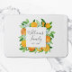 Step into summer vibes with this modern elegant bath mat! Featuring a botanical watercolor floral frame of orange fruits and flowers, it adds a fresh citrus charm to your bathroom. Perfect for housewarming or wedding gifts, this mat is customizable with calligraphy script for a personal touch!