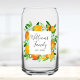 Sip in style with this botanical Can Glass featuring orange fruits and flowers in a watercolor floral frame. A modern elegant summer gift with customizable calligraphy script! Perfect for housewarmings or summer weddings.