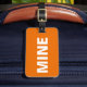 This orange funny luggage tag says it all! It says "mine" on the front loud and clear in white against the orange background. You can easily personalize the back of this funny luggage tag with your necessary details.