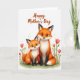 Designed with two stylized orange-furred animals at the center, a larger figure sits close beside a smaller one, their bodies shaded in warm russet and creamy white. Black-tipped ears, paws, and lower legs add contrast, while their wide, glossy eyes catch tiny highlights that make their gaze feel tender and attentive ❤️. Their small, curved smiles and the slight lean toward each other suggest a gentle bond like close family or dear friends. They rest on a soft moss-green patch of ground that fades upward into a plain white background, keeping the focus on their closeness. Around them, a few thin stems rise with blush-pink and soft-orange flowers, adding a quiet, garden-like touch 🌼. Faint green speckles drift through the open space, giving the scene a light, airy texture without crowding it. Above the pair, a neat handwritten-style line of text sits centered in a muted green tone.