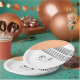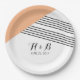 Modern and trendy Geometric Stripe Wedding Paper Plates with a orange triangle and thinly striped accent. These simple yet elegant plates are set up to be easily customized with your wedding information. Find more customization options by clicking Customize It.