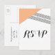 Modern and trendy Geometric Stripe Wedding RSVP Postcard with an orange triangle and thinly striped accent. This simple yet elegant response postcard is set up to be easily customized with your wedding information. Find more customization options by clicking Customize It.