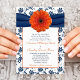 Orange Gerber Daisy Navy Floral Wedding Invitation