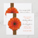 The text and background color on this orange gerbera daisy save the date card is fully customizable, including the quote on the back. You can change it using the personalize option. For more extensive changes to the card, including changing the background color, font, font color, or font layout, choose the customize option. This is a great save the date card for a country or western summer of fall wedding with an brown and orange gerbera daisy theme. Simple, pretty, and cheerful. This card is currently customized for a wedding, but would also work great for any other special occasion. All you need to do is change the wording. NOTE: This invitation is a flat design without any 3D embellishments.
