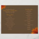 The text and background color on this orange gerbera daisy wedding program is fully customizable. The program itself is intended to be folded down the middle. You can change the text using the personalize option. For more extensive changes to the program, including changing the background color, font, font color, font size, or text placement, choose the "customize it" option. This is a great wedding program for a summer or fall wedding with an orange gerbera daisy theme. The colors are orange and chocolate brown. Simple, pretty, and cheerful. This program is currently customized for a wedding, but would also work great for an anniversary party program (renewal of vows perhaps) or a church bulletin. All you need to do is change the wording.