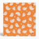 This design features a playful Halloween-themed pattern with a vibrant orange background. The design showcases an array of cute, cartoonish ghosts in soft, off-white tones. Each ghost has a unique and endearing expression, ranging from cheerful and smiling to slightly surprised or sleepy. Scattered between the ghosts are small, whimsical star shapes in a pale yellow, adding a touch of magic and fun to the overall design. The pattern exudes a lighthearted and festive spirit, perfect for the Halloween season.