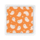 This design features a playful Halloween-themed pattern with a vibrant orange background. The design showcases an array of cute, cartoonish ghosts in soft, off-white tones. Each ghost has a unique and endearing expression, ranging from cheerful and smiling to slightly surprised or sleepy. Scattered between the ghosts are small, whimsical star shapes in a pale yellow, adding a touch of magic and fun to the overall design. The pattern exudes a lighthearted and festive spirit, perfect for the Halloween season.
