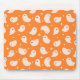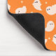This design features a playful Halloween-themed pattern with a vibrant orange background. The design showcases an array of cute, cartoonish ghosts in soft, off-white tones. Each ghost has a unique and endearing expression, ranging from cheerful and smiling to slightly surprised or sleepy. Scattered between the ghosts are small, whimsical star shapes in a pale yellow, adding a touch of magic and fun to the overall design. The pattern exudes a lighthearted and festive spirit, perfect for the Halloween season.