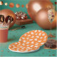 This design features a playful Halloween-themed pattern with a vibrant orange background. The design showcases an array of cute, cartoonish ghosts in soft, off-white tones. Each ghost has a unique and endearing expression, ranging from cheerful and smiling to slightly surprised or sleepy. Scattered between the ghosts are small, whimsical star shapes in a pale yellow, adding a touch of magic and fun to the overall design. The pattern exudes a lighthearted and festive spirit, perfect for the Halloween season.
