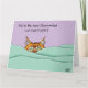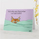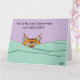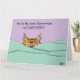 Celebrate Father’s Day with the sweetest message straight from the whiskers! This adorable illustration features a wide-eyed orange tabby cat peeking over soft green blankets against a gentle purple background, paired with the heartfelt and playful quote: “You’re the most Purrrrrfect cat Dad EVER!!!”