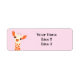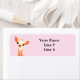 These adorable return address labels have an orange baby giraffe on a pale pink background.