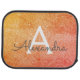 Luxury Orange and Red Faux Glitter Sparkle Elegant Monogrammed Car Mat. These customized car mats can be updated with your name and initial.