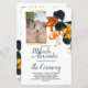 This orange and blue wedding program with orange tiger lilies and navy blue calla lilies is charming with matching envelopes, return-address labels, and party details. Watercolor photo frame is easy to resize and reposition, and adds a unique touch. These programs are easy to personalize, and other size choices are available. Tiger lily cards, stickers, & lables are beautiful as a full stationary suite. Perfect for burnt orange, navy blue theme. Fall, autumn, or late summer wedding.