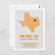 Let them know where you're going with this classy moving announcement. Features the state of Texas in a grid pattern with a heart you can move to show where your new house is. Backside features your message encouraging people to come see you. Comes in burnt orange, maroon, red, state flag blue, green, purple, orange, black and yellow - most based on state school colors. Matching products available.
