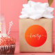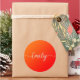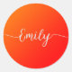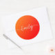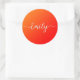 Vibrant orange gradient background for round stickers. Experience the elegance of our fonts with exquisite swashes. Gorgeous artistic design of Alma Wad. Personalize it effortlessly with your own text or name.