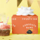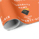 Creative graduation giftwrap for Class of '26 grad featuring black graduation cap with gold tassel on orange background. To personalize edit text to add his or her name.