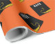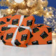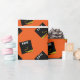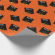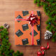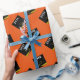 Creative graduation gift wrap and party decoration featuring black and gold graduation cap on an orange background. Edit text to add grad's name and senior class year.