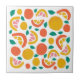 This ceramic tile features a colorful fruit pattern with grapefruit and orange slices, and small green leaves.
