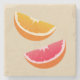 Stone coaster featuring a pair of bright citrus slices in a clean modern style. The fresh fruit design adds a cheerful pop of color while keeping a simple and balanced look. A practical and decorative piece for coffee tables, desks, and kitchen spaces. The citrus design pairs well with summer drinks, tea, coffee, or fresh juices.