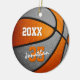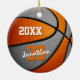This sporty team colors basketball ornament for boys or girls features a realistic looking basketball that has alternating orange and gray recolored panels - personalize the front and back of ornament with year and player's name in an "autograph" style font overlying the athlete's jersey number - by katz_d_zynes