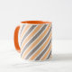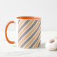 What's better than a cozy sweater and a hot coffee during fall? A coffee mug that complements your autumn vibe! This mug features a modern diagonal stripe pattern in orange, gray, and white colors, that might just make it your new favorite. With its orange rim and handle, you'll feel like you're sipping right from the heart of fall itself. Don't keep autumn waiting — get yours now!
