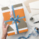 Orange Gray Square Triangle Geometric Wrapping Paper