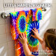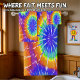 Orange green and yellow tie dye rainbow color design .This item will brighten up any room at any party.