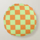 Orange Green Citrus Checkered Gingham Pattern Round Pillow
