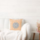 Chic and modern decorative throw pillow in fashionable dark charcoal gray, orange and white diamonds and circles geometric pattern with custom monogram.